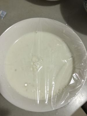打匀后倒回牛奶碗。浮上保鲜膜 上锅蒸15~20分钟。