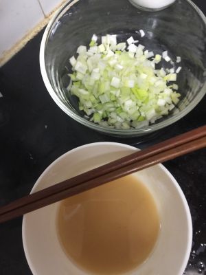 1.制作葱油(锅内热油,放入葱段烧至葱发黄,关火,把葱捞出,碗里放两勺面一小勺盐,然后把锅里的油浇入碗中,搅匀了)这样葱油就做好了 2.葱,适量,切末