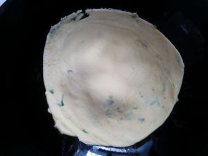 锅中倒入适量油,一定要让锅壁上都有油,油烧热,将饼放入锅中,小火煎,适时翻动~