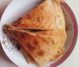 香喷喷的酥饼出锅啦,不小心中间煎糊了一点,不过不影响味道,将就吧,开动开动~