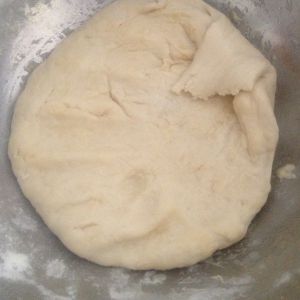 面粉筛过加入热水用筷子搅成面絮。再加冷水揉成面团。揉好后的面团抹上橄榄油。餳1个小时