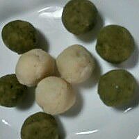 2.事先把红豆沙,抹茶豆沙搓成小圆,冷藏备用!