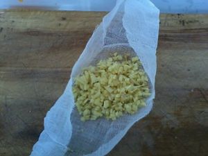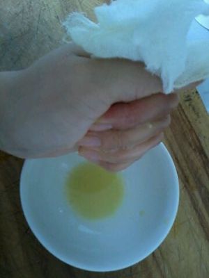 捣烂后一只手就可以将姜汁轻松挤出,注意手要洗干净哟!