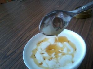 放上坚果珍珠水果类,或者淋上蜂蜜或者撒上粉末。