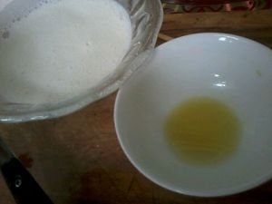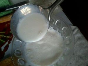 开始撞奶,用大勺舀20下,将奶冷却到70,80度。