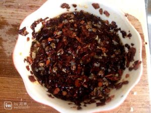 把油倒入放了蒜泥和辣椒等等香料的碗里,把他们烫熟,要小心被烫哦,然后在辣油里加入剩下的所有配料(生抽,老抽,醋,胡椒粉)或者自己喜欢什么口味还可以自己增减