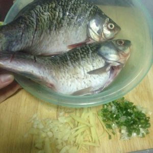 鲫鱼去鳞和内脏洗净备用。