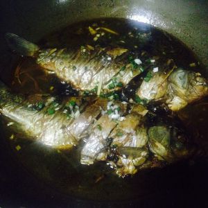 然后加水中小火开始耗汤。耗汤时根据自己口味加入生抽,盐和糖。别忘了勤翻鱼,让两面都进味
