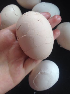 把鸡蛋壳轻轻敲碎,使鸡蛋四周均有裂缝。
