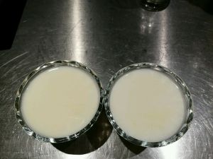 等到牛奶放到稍凉的时候会看到牛奶有一层奶皮浮起,用筷子轻轻的帮忙挑住奶皮,将碗里的牛奶倒在另外一个碗里,奶皮留在碗底(要留少许的牛奶在里边,否则一会奶皮就会糊在碗底,浮不起来了)。