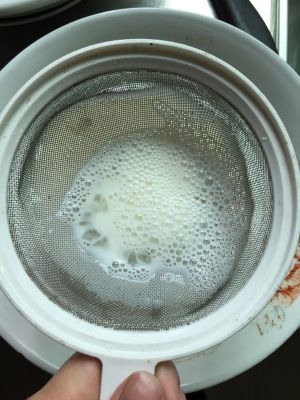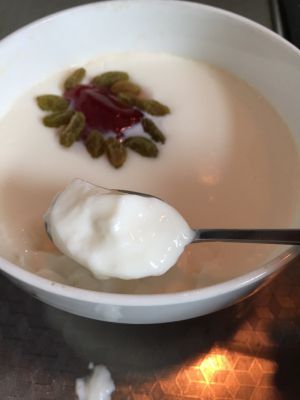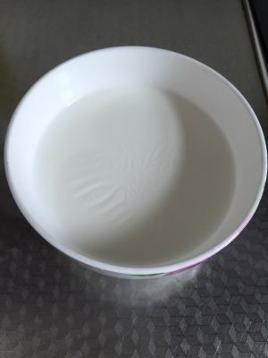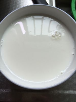 牛奶倒完,奶皮就沉在碗底,千万不要把奶皮弄破