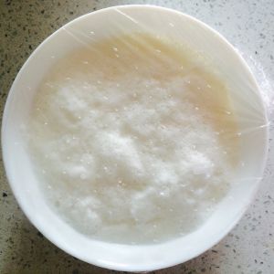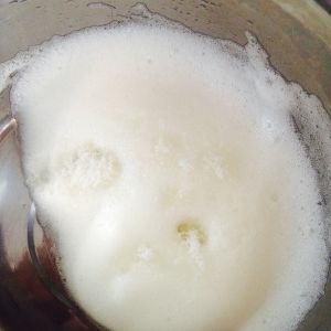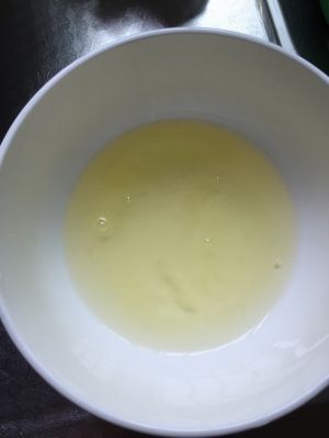 蛋清一定要打散打匀,剥蛋清也有技巧,蛋壳敲一个缝,让蛋清慢慢漏到碗里
