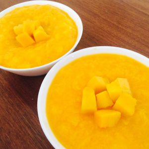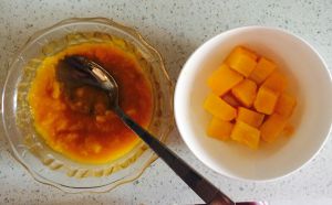 最后将芒果酱平铺即可~再放上几个芒果粒作为装饰。