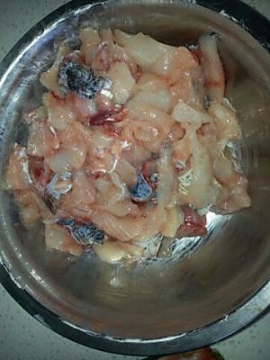 桥头酸菜鱼 包 (超市有卖)打开里面有四袋,用腌鱼包将鱼片拌好(腌30分钟)