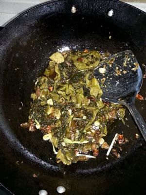 接着下葱姜蒜豆瓣酱翻炒下酸菜翻炒