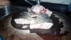 鱼肉切片用油盐生粉捞均,可以放点胡椒粉。