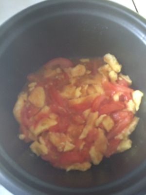 鸡蛋可以留锅内 放西红柿盖在蛋上面 总觉得这样可以让西红柿的汁充分融入蛋里面 过半分钟来个大翻身,让蛋盖在西红柿上面 使西红柿充分熟透