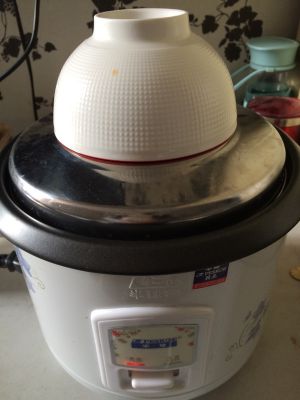 盖上锅盖,上面再扣一个碗,增加总量,用煮饭模式
