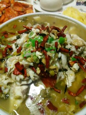 喜欢吃麻的'烧油麻椒炒香'倒入酸菜鱼上面!一份超有爱的酸菜鱼做好了!
