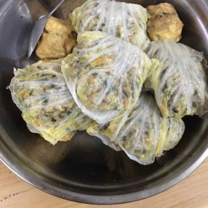 蒸熟的酿白菜包,酿豆腐!很好吃哦