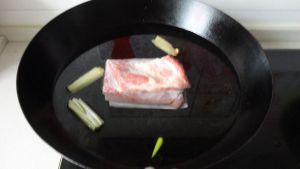 五花肉洗净,冷水下锅,放葱姜,煮至断生