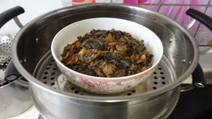 蒸完出来放置一晚上或两三小时(主要是为了入味)。吃的时候取出来再蒸上40分钟即可。