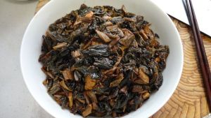 这个是我买的梅干菜,放了一点香辣菜的照片,梅干菜我是用热水泡的,泡了十分钟左右