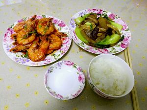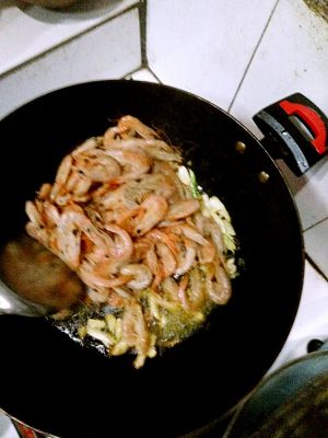 再加少许葱花,翻炒几下就可以出锅了。味道还不错,小朋友们特别爱吃,如果是新鲜的活虾味道肯定会更好。