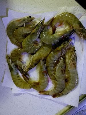 把虾去掉泥沙线,用厨房纸巾把水份擦干。
