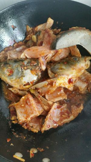 鱼骨用盐,料酒,,白胡椒粉,淀粉腌一下搅拌均匀备用。10分钟后,锅里放油,加葱姜蒜末炒香,加入郫县豆瓣酱炒出红油。