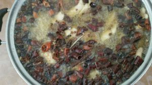 锅热放花椒辣椒。