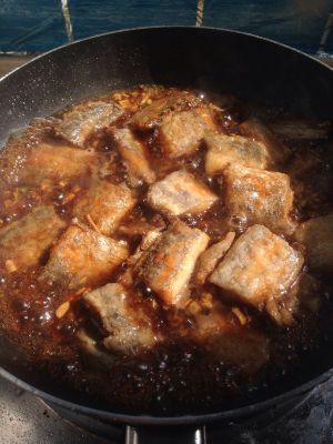 就热锅热油放姜蒜,爆香放鱼,放碗里备好的酱油醋。小火10分钟后大火收汁。