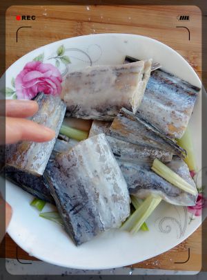 带鱼处理好,切段放入料酒盐腌制30分钟。