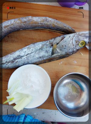 准备一条带鱼,洗净。淀粉、葱、姜、盐、味精、白糖、