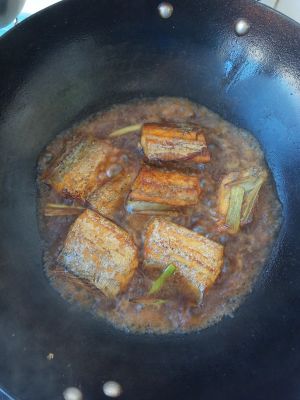 加入酱汁,加水莫过带鱼。慢炖8分钟即可,收汁时放盐出锅。