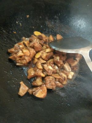 闷到快没有汤汁后,大火快速翻炒