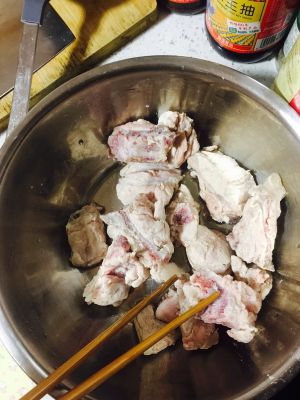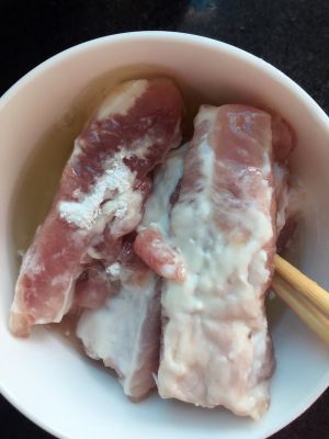 排骨泡净血水,加盐加酱油腌制半个小时。