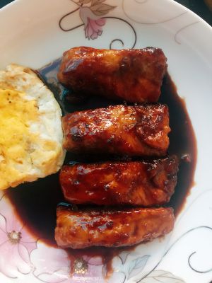 加入一勺料酒,俩勺生抽,三勺白糖,三勺醋,放适量的盐。可以按照自己的口味来调,喜欢酸点的多放点醋,喜欢甜点的多放点糖,我用的是太古细糖,可以用白糖,也可用冰糖,用冰糖,用冰糖颜色会亮晶的,很好看。