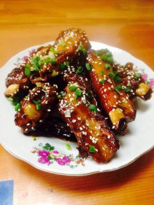 1、排骨用滚水煮出血沫 打掉 2、用料酒 姜丝 大葱丝 盐 腌制半小时 3、上锅蒸熟 4、剔除姜葱丝大火炸 大火才会外酥内嫩 注意:别炸糊了 5、转小火把所有调料倒进去 入味后大火收汁 6、出锅前再倒些醋(弥补烹调时挥发的) 7、装盘 撒上芝麻 葱花即可