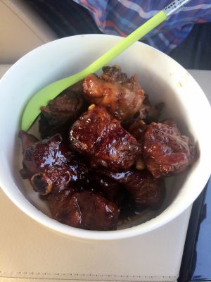 淀粉中加入适量的康乐醋调匀,备用。锅里加少许水,加入生抽,老抽,糖。烧开后倒入煎好的排骨,不停翻炒片刻后,加入调和好的淀粉,继续翻炒至每块排骨都裹上芡汁,即可出锅。