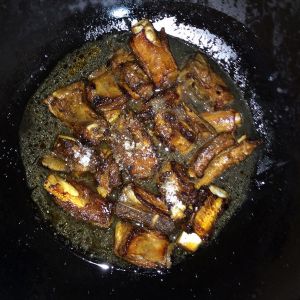 排骨炸至微焦色捞起