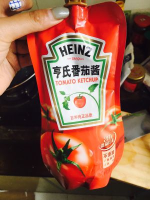 然后喜欢的朋友可以放少许番茄汁,调色也调味,最后大火收汁。