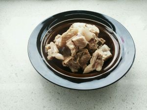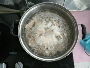 待浮沫漂出后将排骨捞出备用。