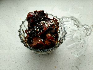 乘出锅,家里有芝麻的可以最后在排骨上撒些芝麻点缀一下。