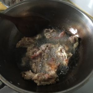 第一步把小段的精中排洗净搓盐,有料酒可放少许,腌制十分钟左右,放入开水焯水十分钟左右捞出沥干,忘记拍图!