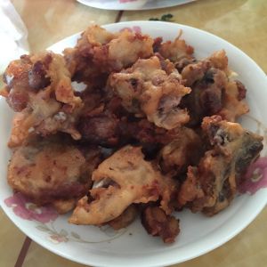 这个颜色算炸好,多余的油盛出可以用来烧其他的菜,爆个杏鲍菇加点椒盐粉也不错。