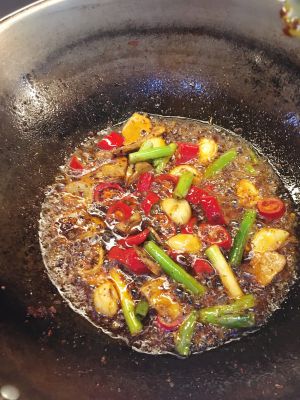 热锅下油,油可以多一点,把姜/葱/蒜/洋葱炒出香味
