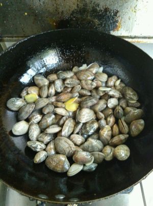 热锅热油爆姜蒜出香味,放蛤蜊;