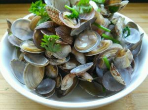 撒香菜段,肉嫩鲜香的清炒花蛤就可以出锅盛盘了。