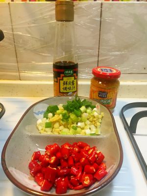 葱姜蒜切沫~多一点香啊!小米辣切段。